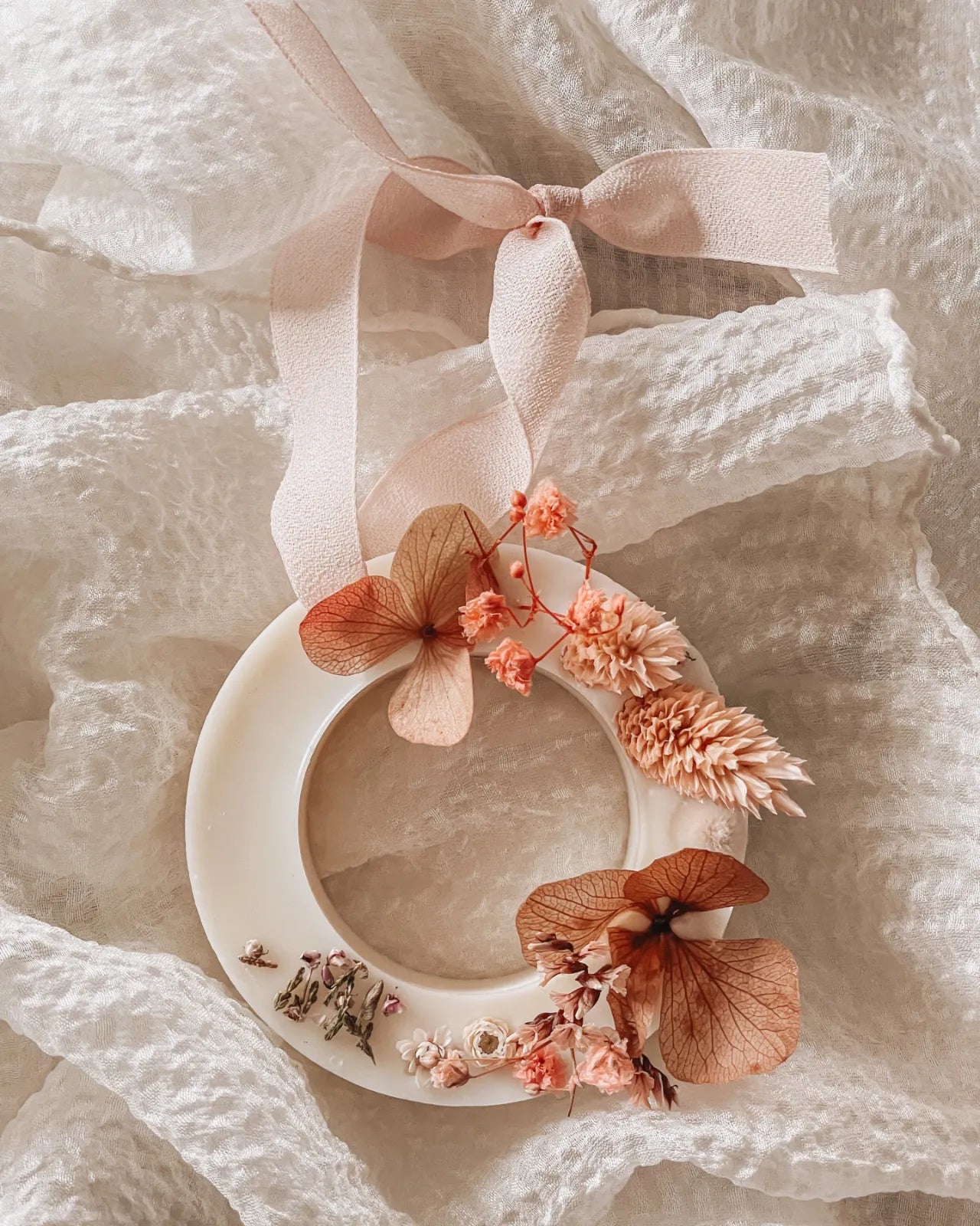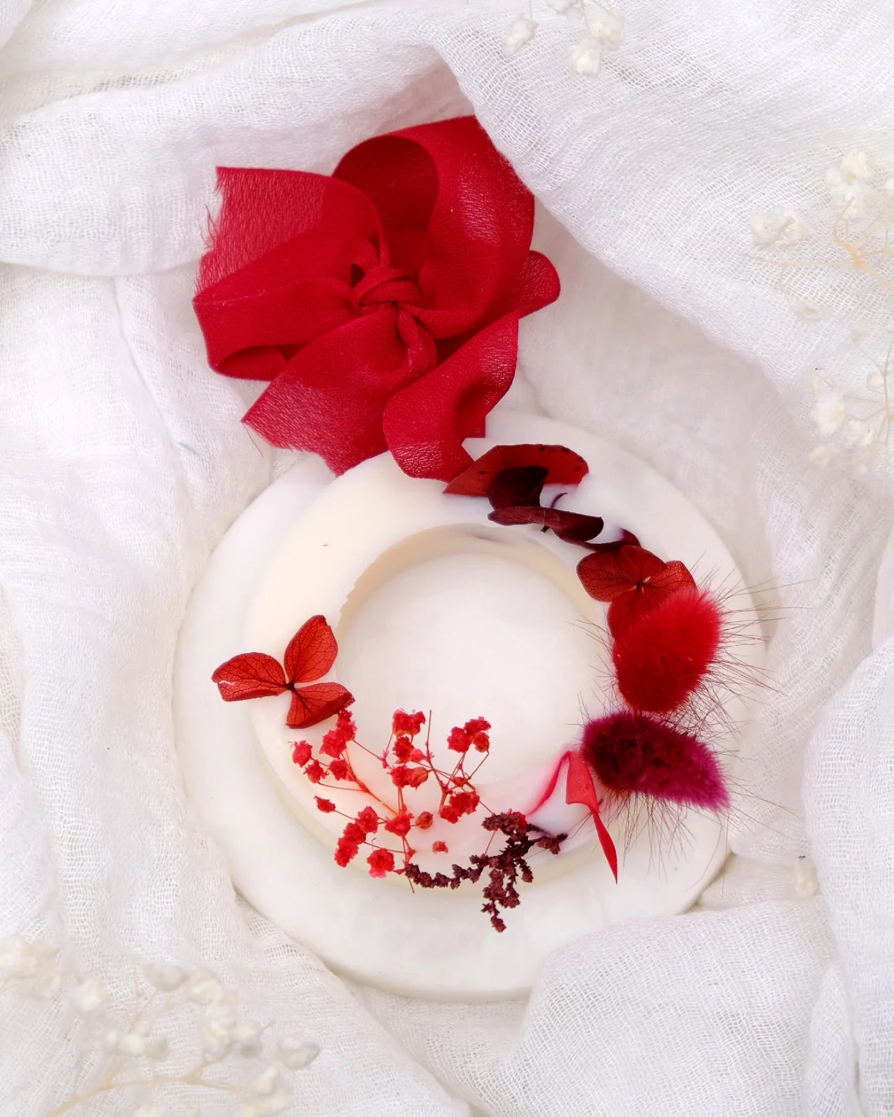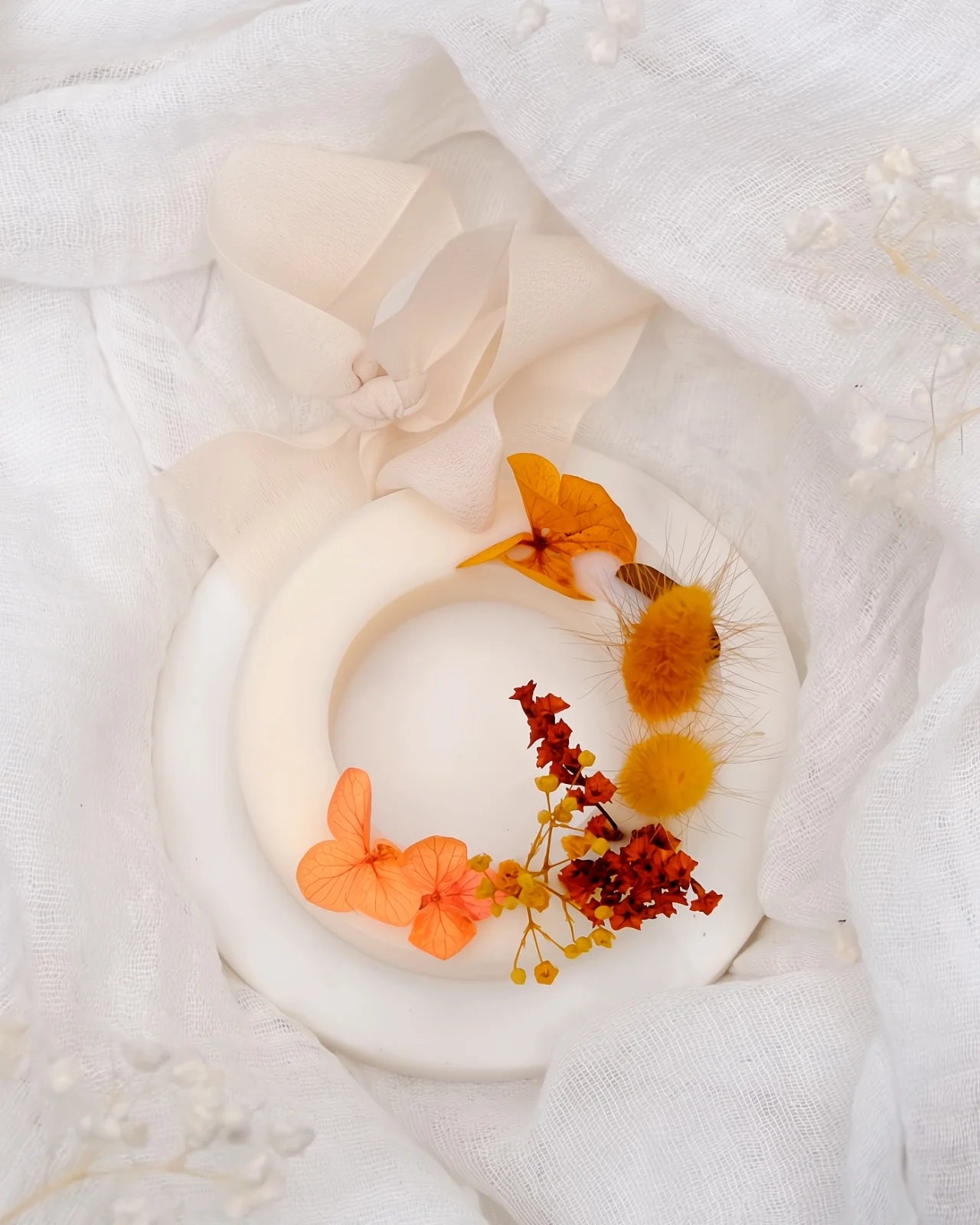 ✔ Ogni pezzo è realizzato a mano nel nostro atelier e impreziosito da una composizione botanica di fiori secchi e stabilizzati