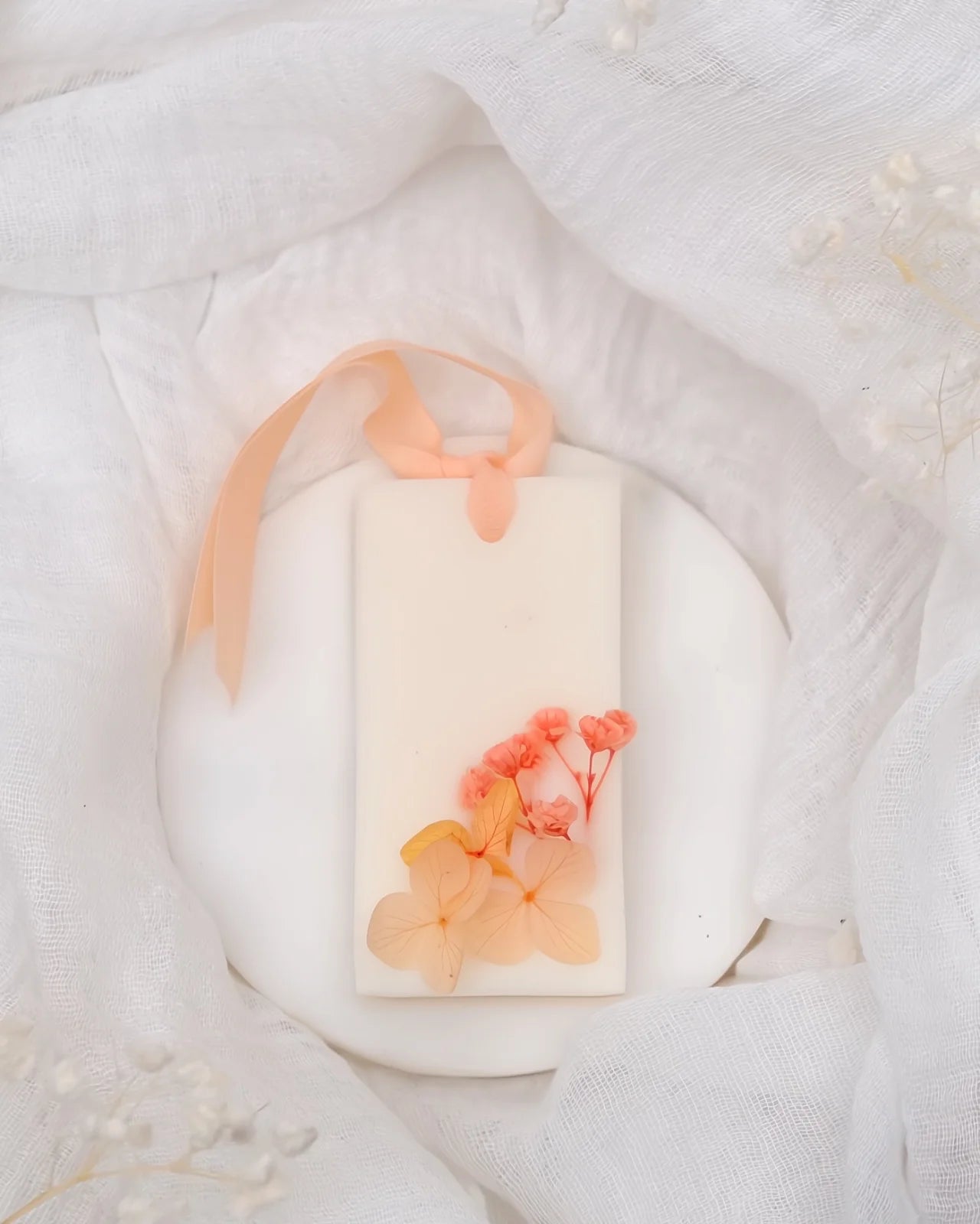 ✔ Questo profumatore solido è una tavoletta di cera di soia naturale, arricchita con una miscela raffinata di profumo di arancio, mandarino, gelsomino, patchouli, fragoline di bosco, crema e pesca.